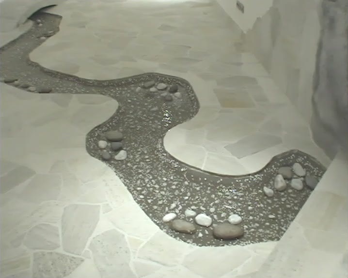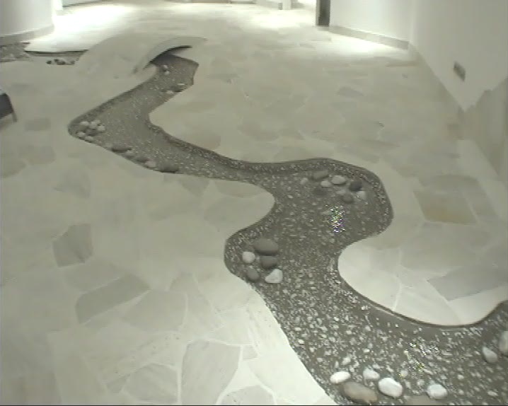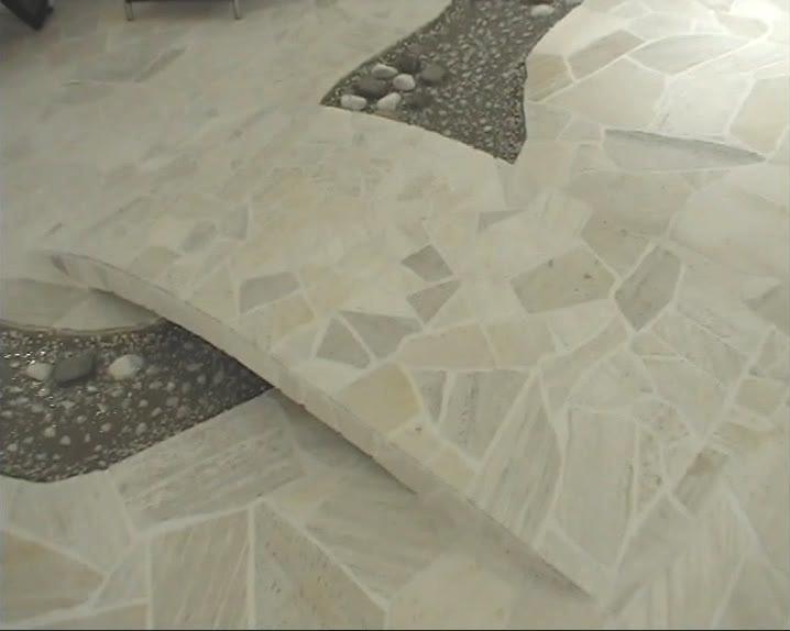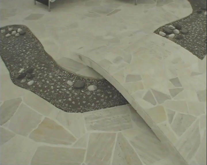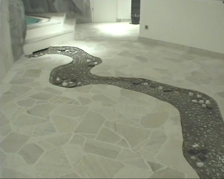 Polygonal-Natursteinplatten passend zum Bodenbelag. |