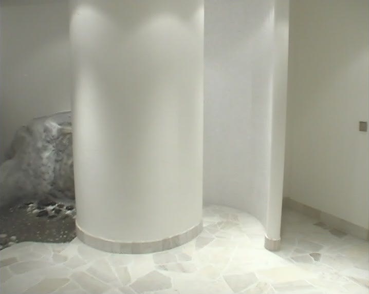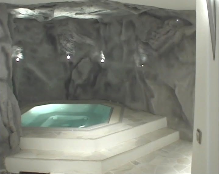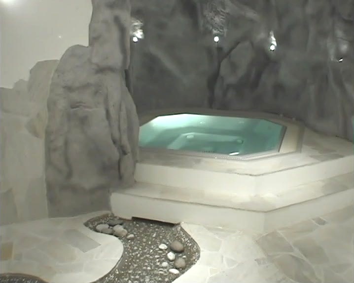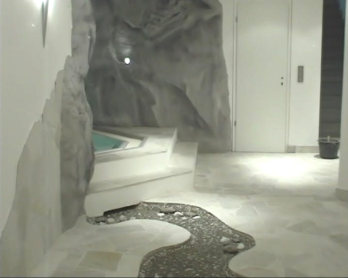 Gemauerte Schneckendusche mit Kunstfelsen und